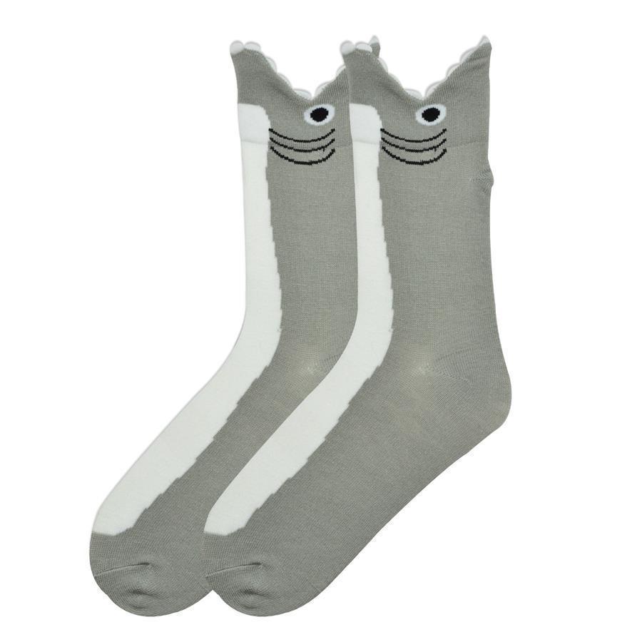 These socks propose a somewhat symbiotic friendship between human and leg-eating sharks. You show your affection for them by wearing them on your feet, and they REALLY like your feet. Stay alert near large bodies of water - these set a bad example for the marine life.